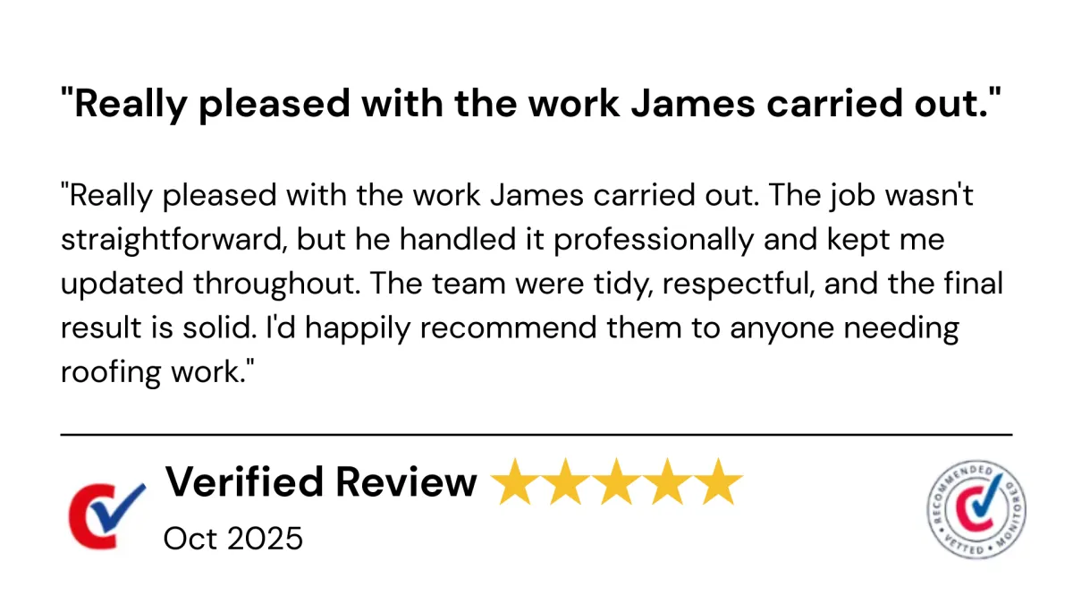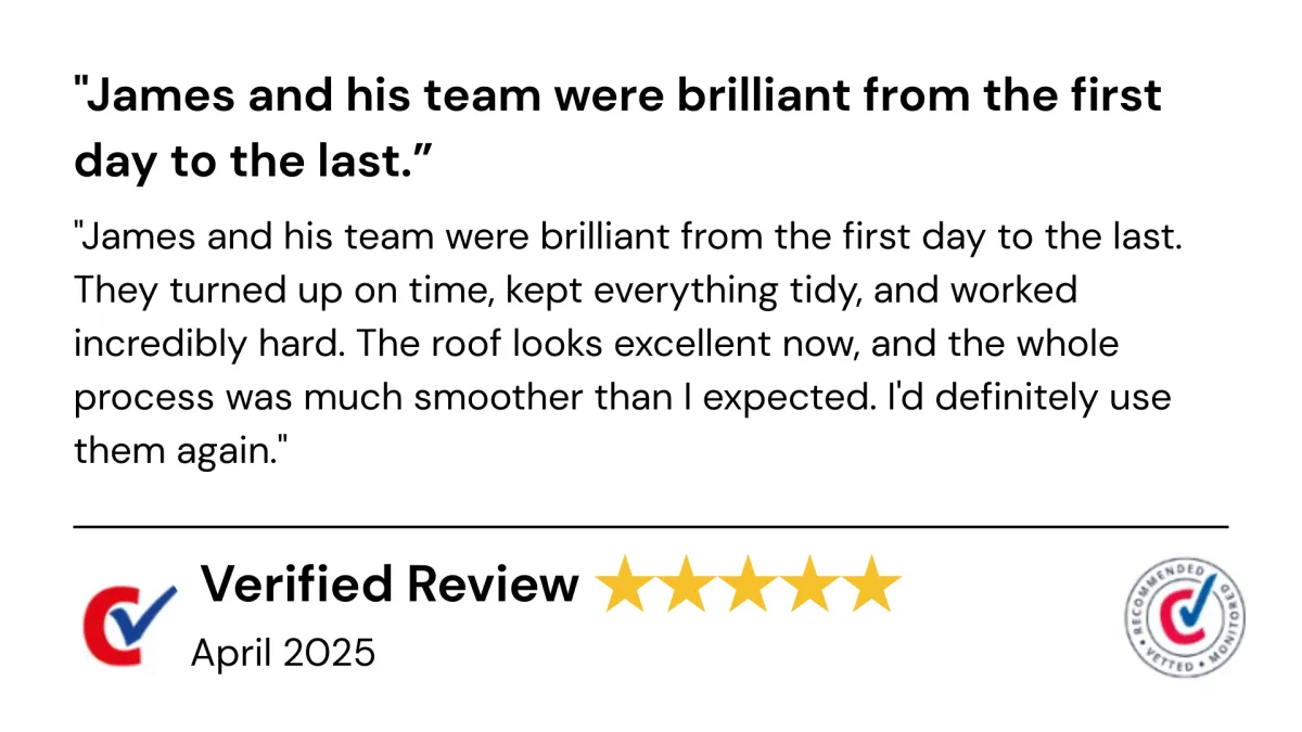 "Hi I'm James and I've been roofing in Oxford and Reading for over 16 years. I started this family business with one goal - to give homeowners a straight, honest service without the hard sell or hidden costs.
